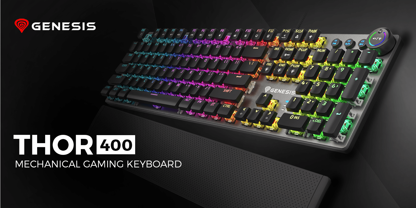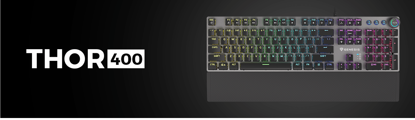 Thor 400 RGB має 12 мультимедійних клавіш, розташованих на кнопках F1 - F12, які дозволяють керувати музикою та ефективно відкривати такі програми, як калькулятор або електронна пошта. Крім того, клавіатура оснащена інноваційною функціональною ручкою з підсвічуванням, яка робить керування гучністю та яскравістю підсвічування ще зручнішим та швидшим!