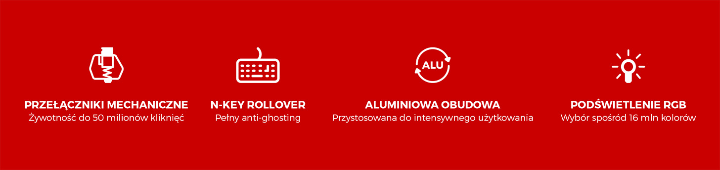 Thor 303 TKL — це механічна клавіатура з гарячою заміною зі змінними перемикачами Outemu Red із надзвичайно швидкою реакцією та довговічністю до 50 мільйонів натискань. Міцний алюмінієвий корпус у поєднанні з Повне підсвічування RGB з ефектом PRISMO гарантує довговічність і привабливий зовнішній вигляд під час кожної ігрової сесії.