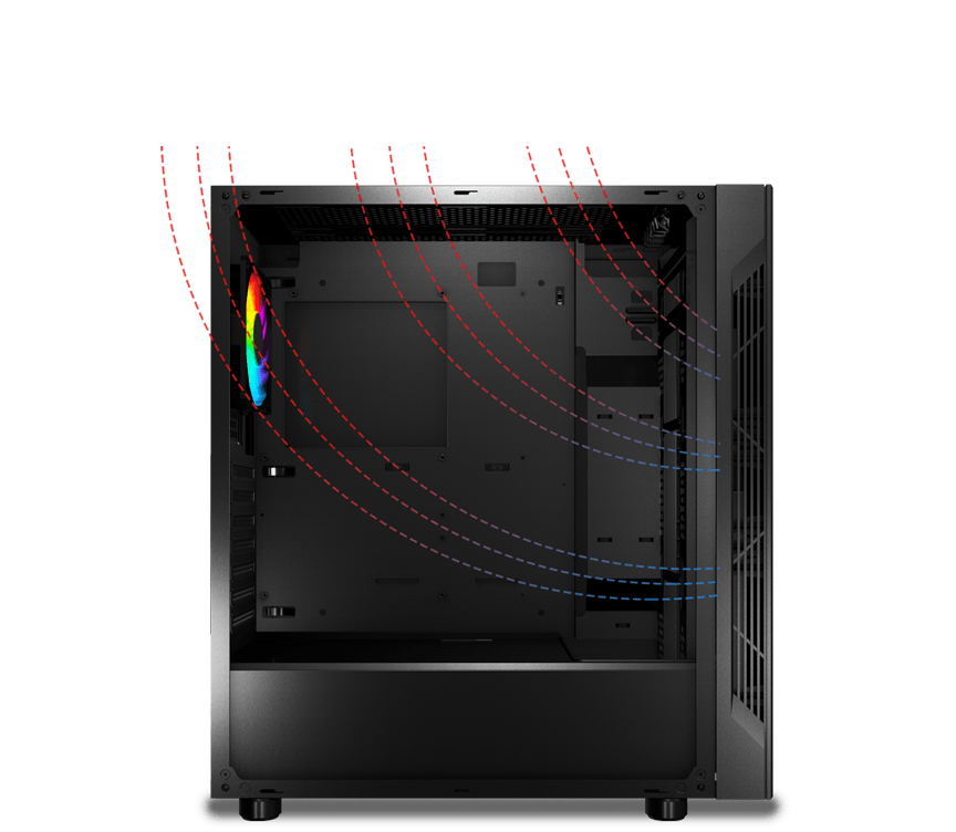 Вентилятор RGB, вбудований у корпус, забезпечує вражаюче підсвічування та чудові світлові ефекти.