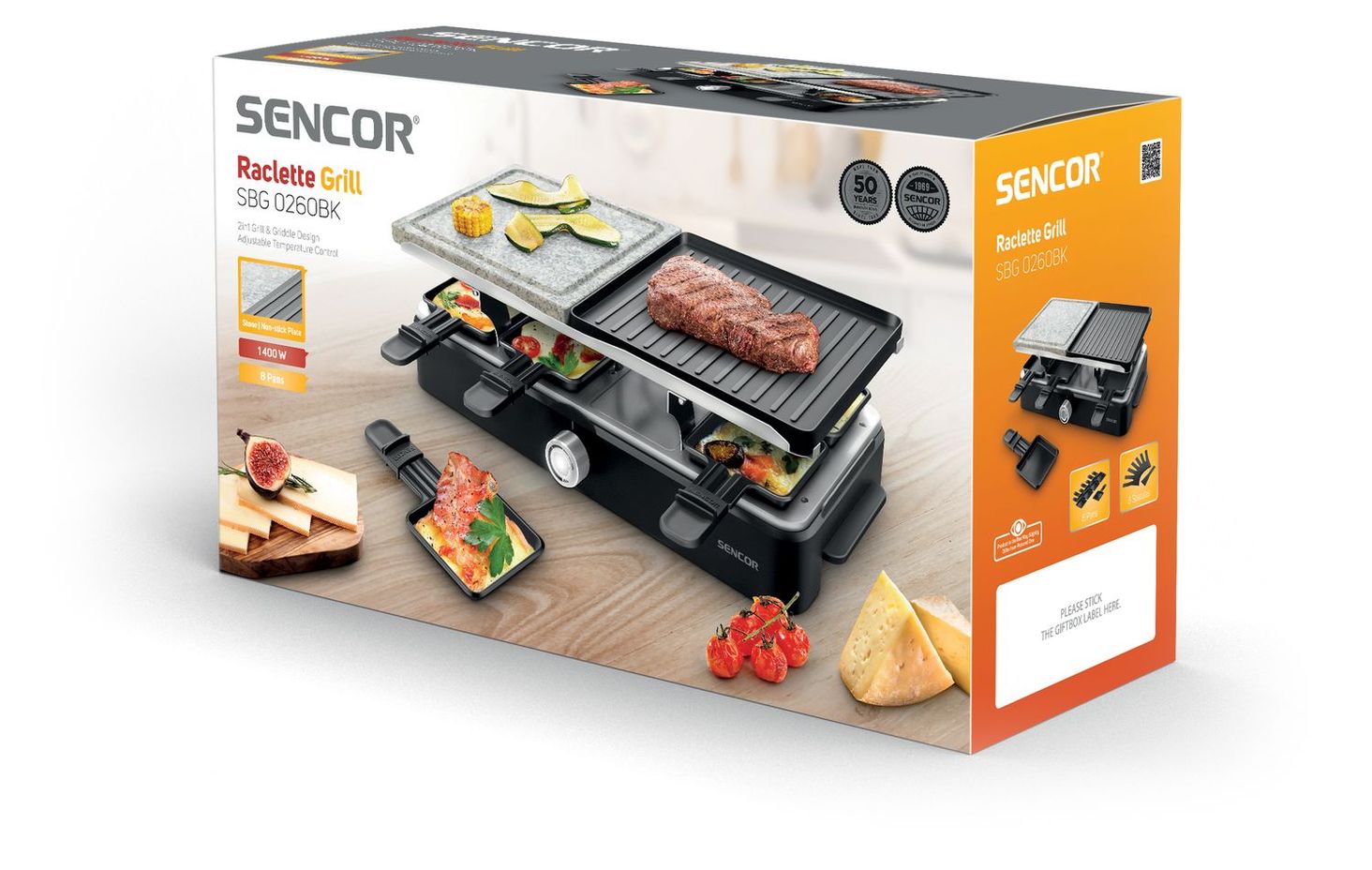 Ви теж любите гриль, як ми? Представляємо електричний раклет-гриль Sencor SBG 0260BK, який допоможе вам приготувати найкращу шашличну вечірку навіть вдома. Sencor сконфігурував гриль 2-в-1, який має дві різні поверхні гриля для приготування різних страв. Це один із раклет-грилів із сковорідками для дрібних шматочків або сиру. Ви можете легко встановити відповідну температуру завдяки ручці. Навіть прихильники здорового способу життя не погордують нашим гіреллом, адже достатньо лише кількох крапель олії для досягнення чудових результатів. Легко переносити завдяки двом міцним бічним ручкам.