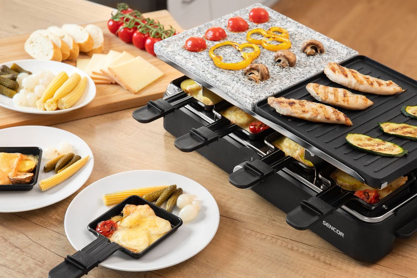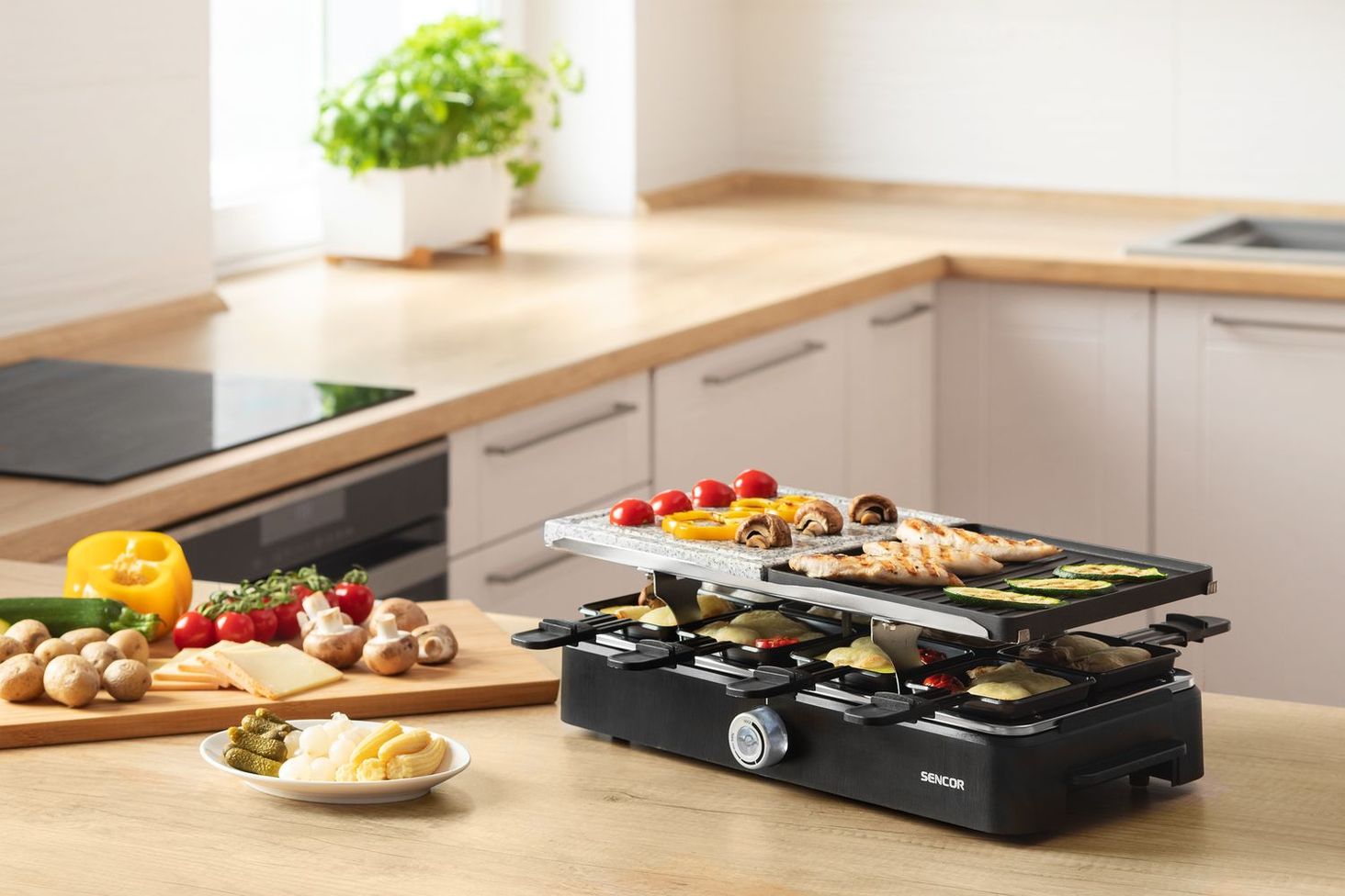 Оскільки це домашній електричний раклет-гриль, ви можете використовувати його вдома, на кухні, на балконі, але він також ідеально підходить для гриля в палісаднику. Це електричний гриль, який можна використовувати для приготування барбекю будь-де, влітку чи взимку.