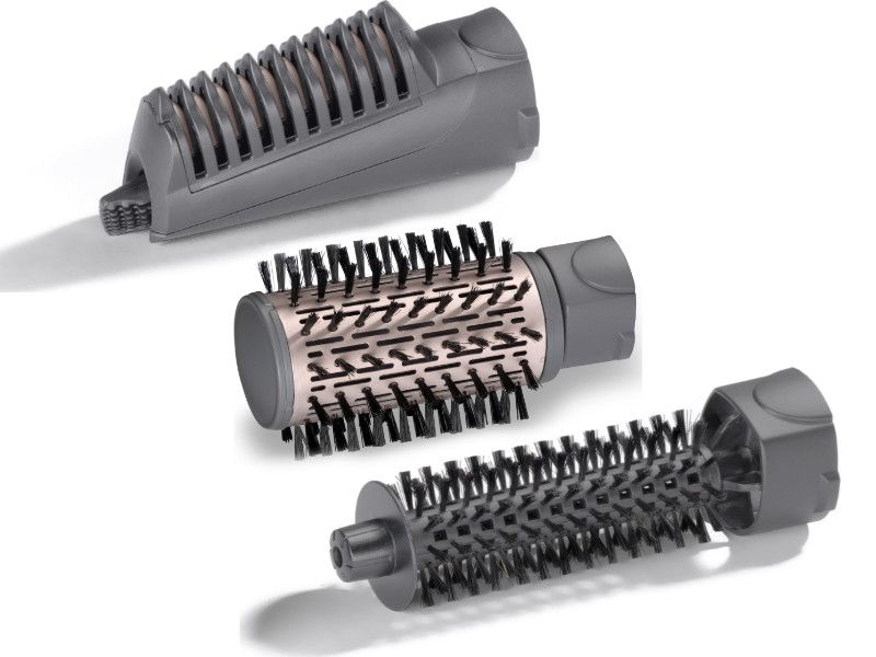 Щітка діаметром 50 мм із керамічним покриттям обертається у двох напрямках, дозволяючи досягати укладання «назовні» та «всередину». Просто покладіть на нього волосся, і воно почне завиватися. Вузька 20-мм щітка з щетиною кабана ідеально підходить для завивки навіть короткого волосся. Випрямляюча головка забезпечує вдвічі ефективніше випрямлення від коренів.