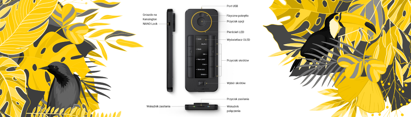 Quick Keys розроблено, щоб зробити керування пристроєм зручним та інтуїтивно зрозумілим. Кнопка «встановити» дозволяє швидко перемикатися між групами (наприклад, ескіз, розфарбовування, редагування), а кнопки можуть керувати ярликами для масштабування, вибору пензля, вибору шару тощо. Це рішення означає, що творцю не потрібні миша та клавіатура для зміни функцій, кольорів або розмірів.
