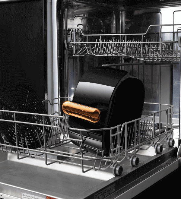 Фритюрниця без олії оснащена решіткою для випічки та чашею, які легко миються. Все, що вам потрібно зробити, це вийняти їх, коли ви закінчите роботу_x000D_ помістіть його в посудомийну машину*. Завдяки цьому ви зведете до мінімуму час, необхідний для підготовки пристрою до наступного використання.