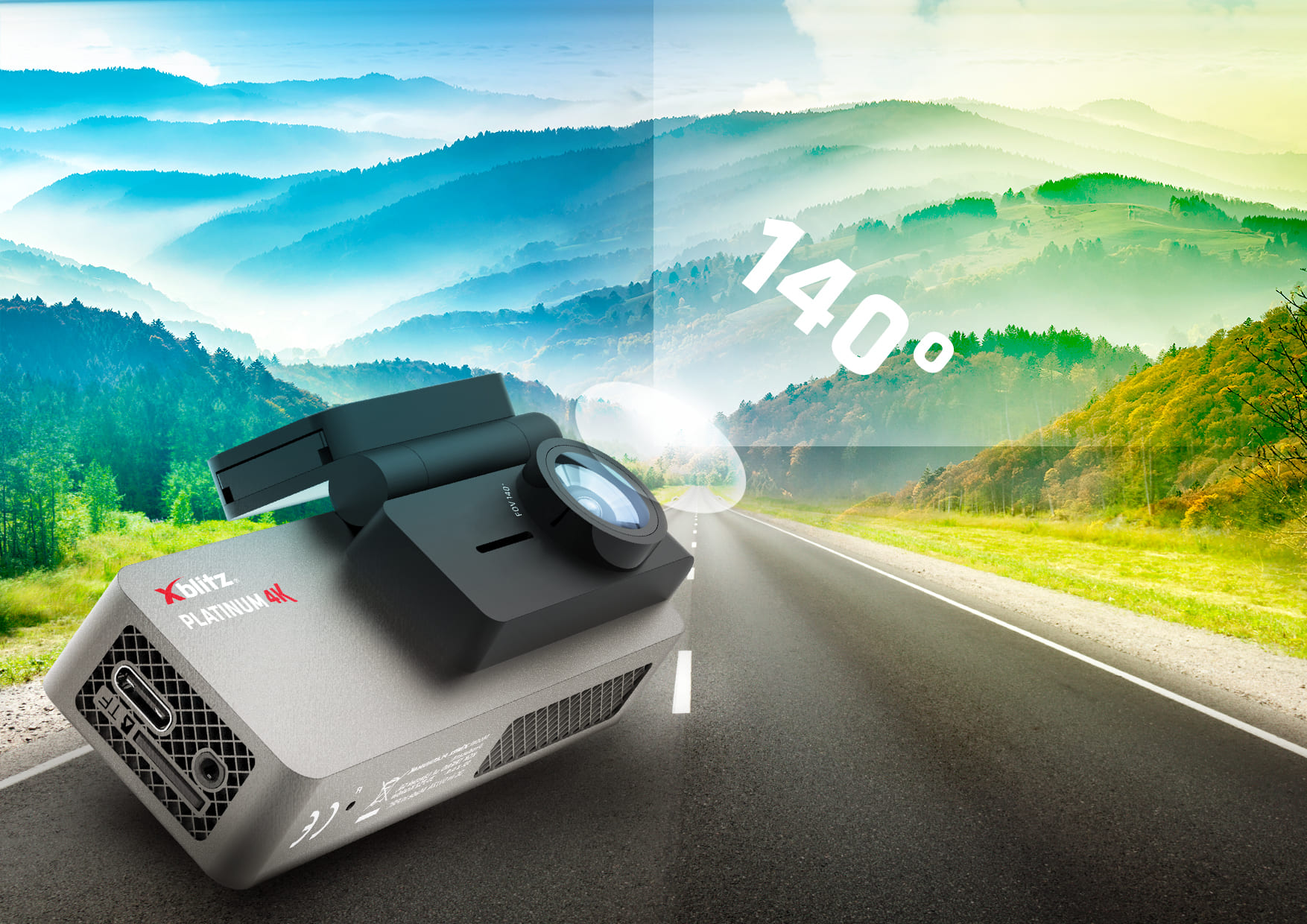 Добра видимість, безсумнівно, впливає на безпеку водіння. Якщо ви хочете купити відеореєстратор, обов'язково зверніть увагу на ширину кута огляду. Xblitz Platinium 4K записує в діапазоні 140°, завдяки чому ви можете вільно спостерігати за обома смугами, включаючи узбіччя.