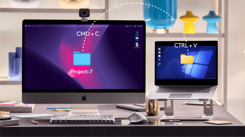 Клавіатура MX слідкує за вашою мишею з підтримкою Flow від одного комп’ютера чи ноутбука Mac до іншого, тобто ви можете друкувати на кількох комп’ютерах Mac в одному безперебійному середовищі. Передача файлів, документів і зображень між п