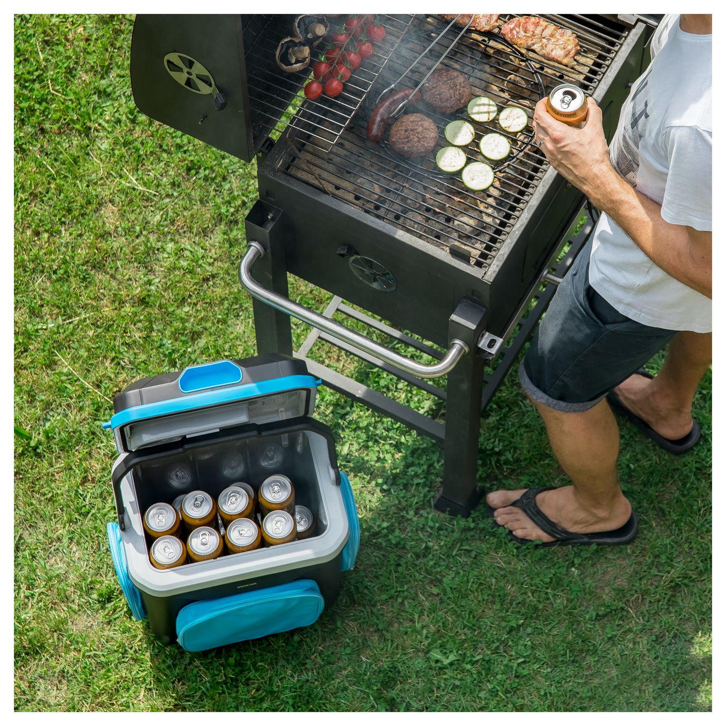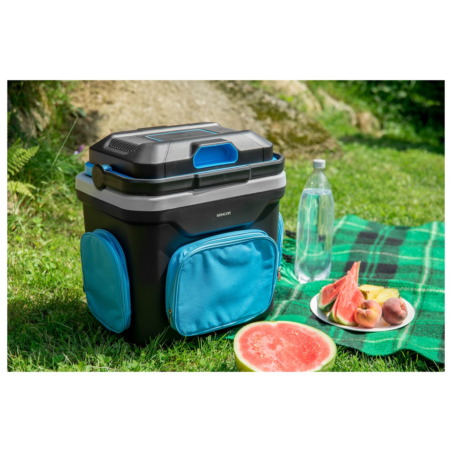 Для використання в автомобілі та вдома (подвійне джерело живлення 12/230 В) Зелений і червоний світлодіодний індикатор для охолодження або обігріву Велика ручка для зручності перенесення Підключення до розетки 12 В (автомобільний прикурювач) / до 230 В мережева розетка Еко-режим ECO при живленні від розетки 230 В електроенергії (охолодження автоматично вимкнеться після досягнення 12 °C) При закритій кришці холодильник вміщує шість ПЕТ-пляшок по 1,5 л або п'ять ПЕТ-пляшок по 2 л