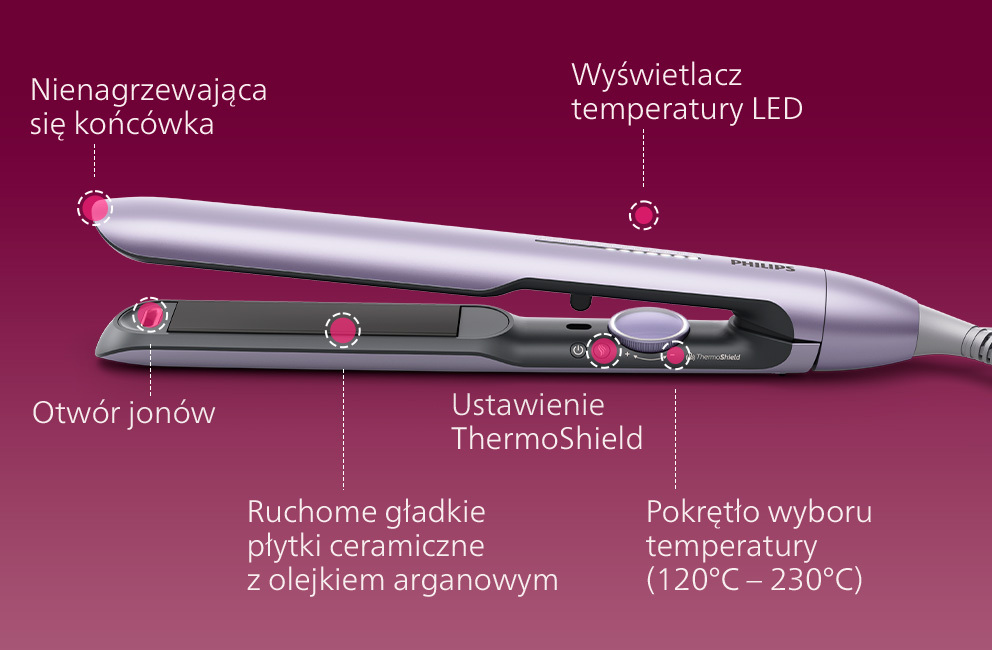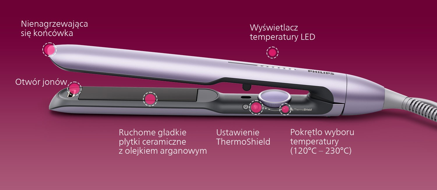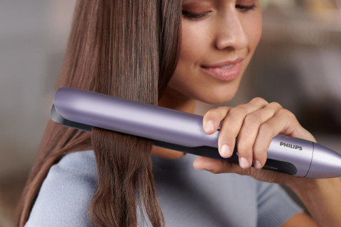 Щодня ваше волосся може виглядати так, як вам подобається. Технологія ThermoShield у випрямлячі для волосся Philips серії 7000 дозволяє укладати волосся за постійної температури, що зменшує термічні пошкодження¹.