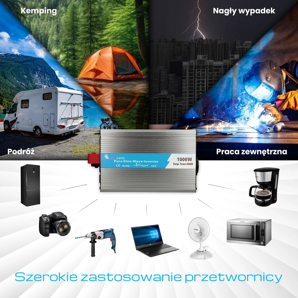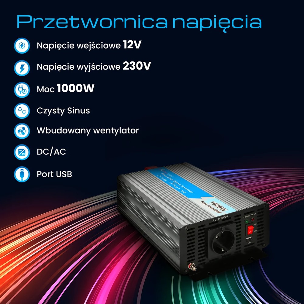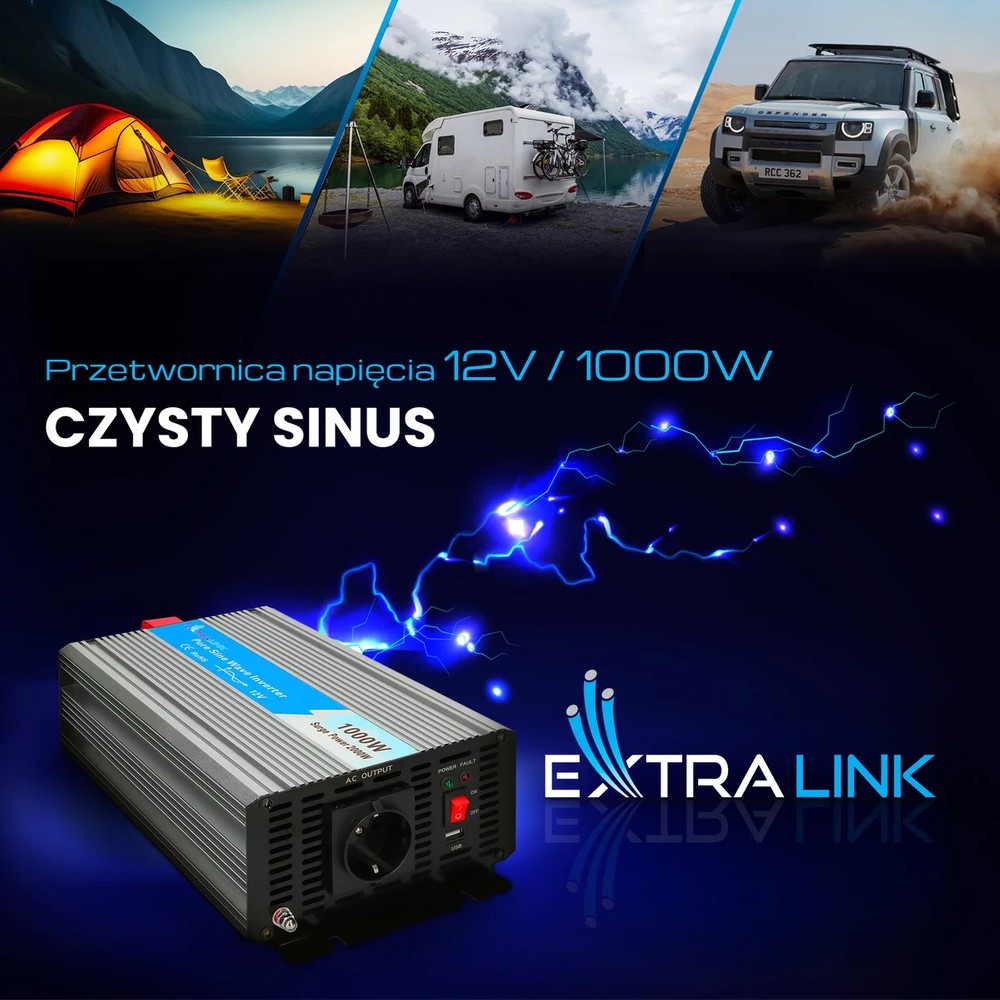 Перетворювач напруги Extralink OPIP-1000W — це пристрій, який перетворює вихідну напругу від батареї (постійного струму) у струм мережі змінного струму 230 В. Змінний струм 230 В використовується для живлення побутових приладів, таких як телевізор, холодильник, радіо, освітлення, а також для зарядки ноутбуків і мобільних телефонів. Це тип електроенергії, що надається комунальними службами.