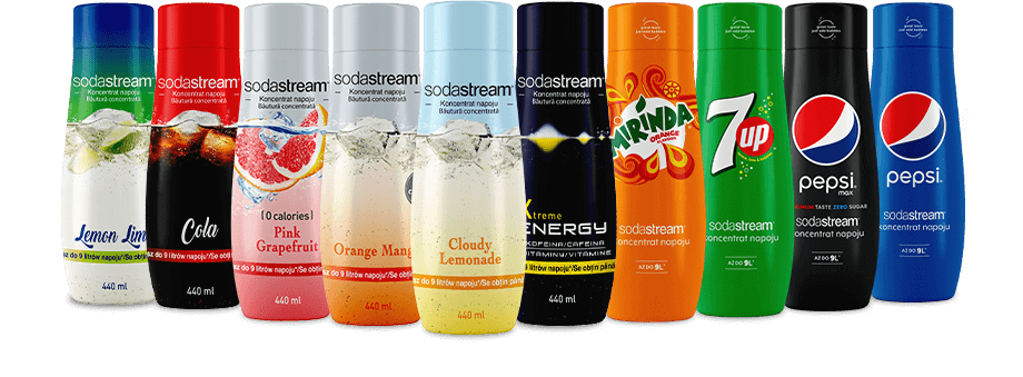 На вас чекають варіанти Bubble: Zero, якщо вам важлива лінія, Classics, якщо ви фанат класики, або citrus Lemonade._x000D_ Також спробуйте оригінальні аромати з колекції SodaStream x Pepsi: Mirinda, Pepsi, Pepsi Max і 7 Up.