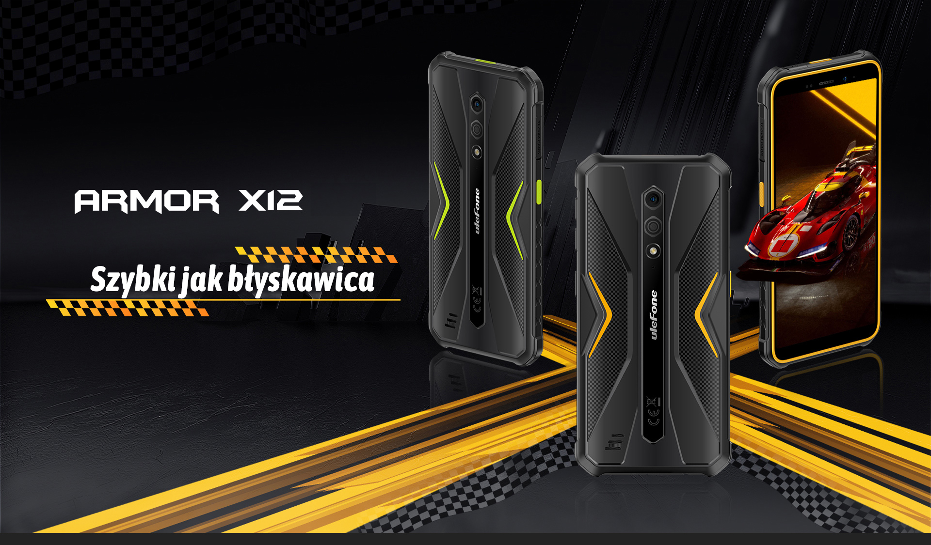 Armor X12 має нову форму XRacing і мотив із картатим прапором на задній кришці, натхненний культовими гоночними прапорами Формули-1.
