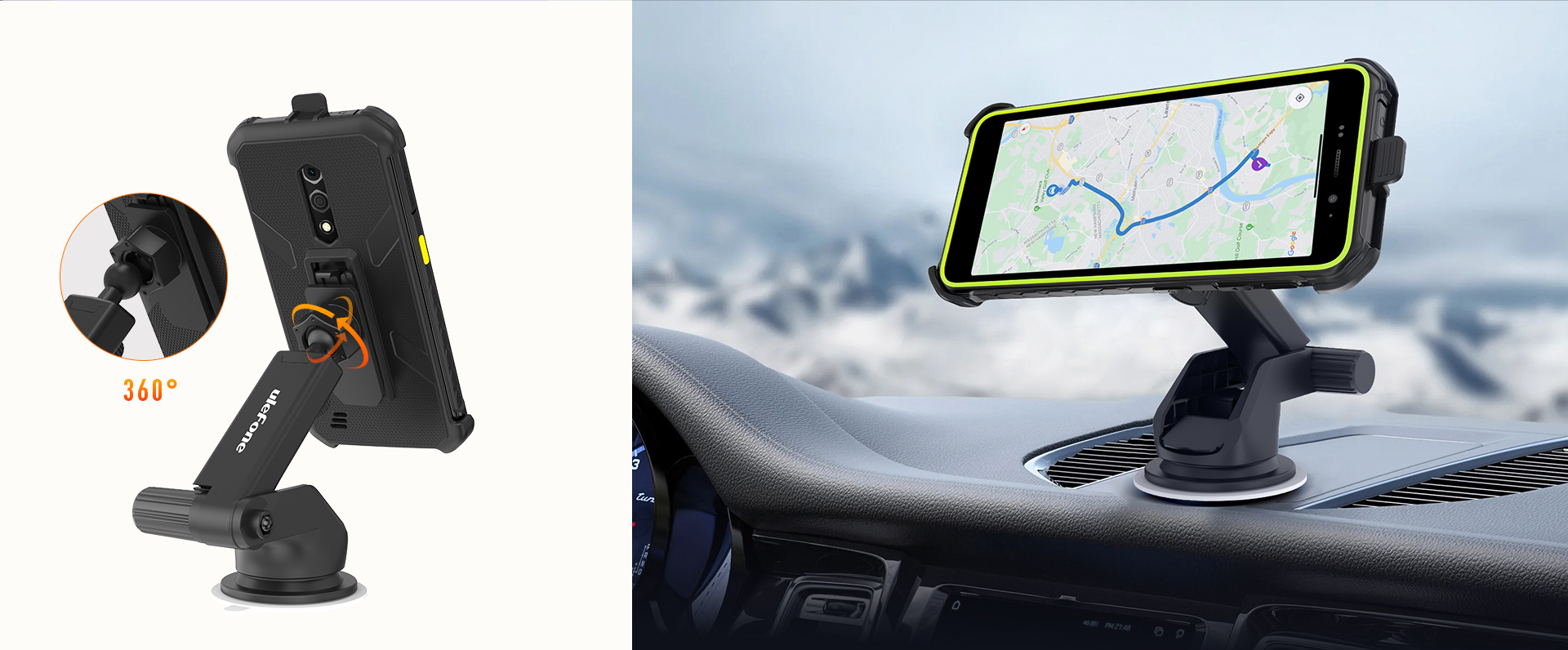 Це тримач, який дозволяє легко встановити телефон на вікно автомобіля, приладову панель, робочу поверхню чи іншу плоску поверхню. Ви також можете відрегулювати телескопічну руку, яка дозволяє нахиляти та висувати ручку від 14 до 20 см. Тримач також можна повертати, тому ви завжди матимете гарний огляд екрана телефону.