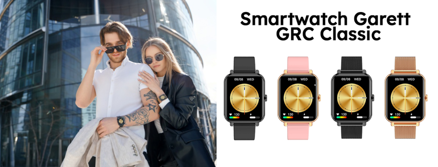 Розумний годинник Garett GRC Classic — це годинник для людей, які цінують стиль і елегантність і водночас потребують функціонального сучасного пристрою. Розумний годинник завдяки 1,78-дюймовому AMOLED HD-дисплею з роздільною здатністю 368 × 448 пікселів забезпечує чіткі та динамічні кольори та відповідну яскравість зображення. Сенсорний екран дозволяє використовувати багато корисних функцій, таких як повідомлення, час, погода, календар або перевірка даних про фізичну активність. Сучасна технологія AMOLED також забезпечує низьке енергоспоживання під час щоденного використання смарт-годинника та функцію постійного підсвічування Always on Display.