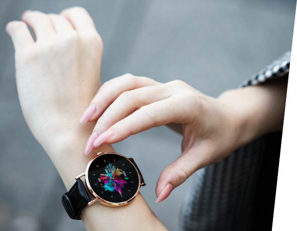 Тут ви легко знайдете щось для себе, адже жіночий розумний годинник Garett доступний у семи кольорах. Ця різноманітність робить пристрій одночасно елегантним і спортивним. Крім того, ви можете замінити ремінець свого розумного годинника. Підберіть годинник до свого стилю одягу та дистанційно керуйте музикою чи камерою на телефоні.