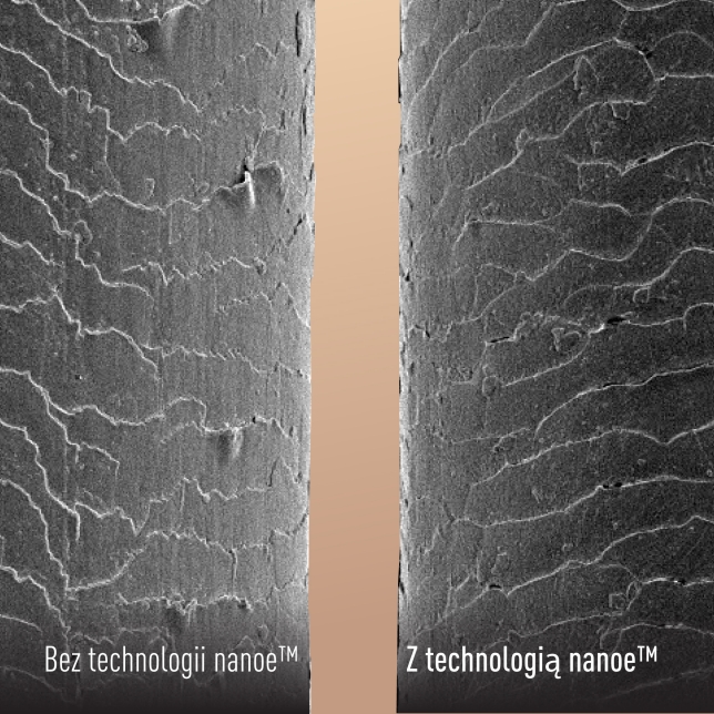 Завдяки технології nanoe™ наночастинки води проникають у кутикули волосся, відновлюючи баланс вологи. Це допомагає зменшити статику та завивання, щоб підкреслити природний блиск волосся від коренів до кінчиків.