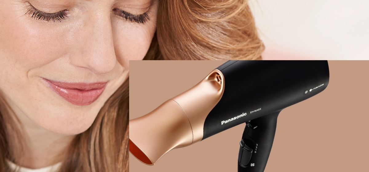 Фен EH-NA65 оснащено інноваційною технологією nanoe™ — доведено, що ця технологія покращує блиск волосся. Він утримує вологу у волоссі, захищаючи його від пошкоджень під час щоденного укладання та розчісування. Це робить волосся гладким і блискучим*. *Результати випробувань, проведених інститутом Intertek