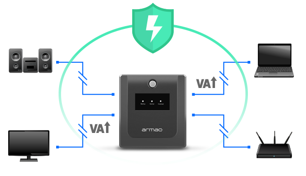 ДБЖ Armac спочатку захищає ваші пристрої від пошкодження під час раптового збою живлення.