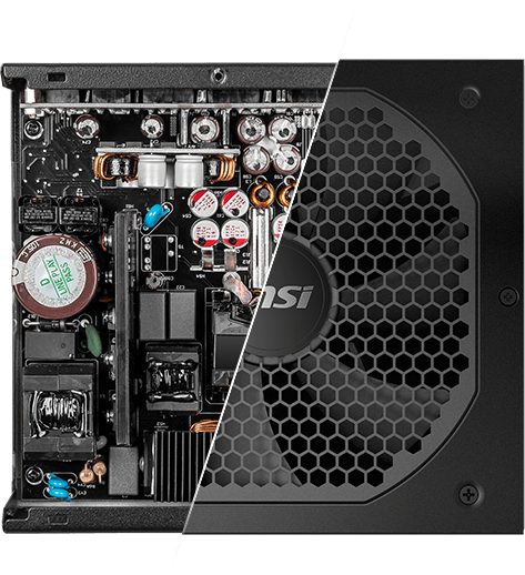 Прагнучи до безкомпромісної якості продукту та робочої стабільності, ігрові блоки живлення серії MPG A1000G оснащені 100% японськими конденсаторами 105°C і полімерно-алюмінієвими твердотільними конденсаторами з твердим електролітом.*Ілюстрація лише для інформаційних цілей. Будь ласка, зверніться до зовнішнього вигляду фактичного продукту для довідки.
