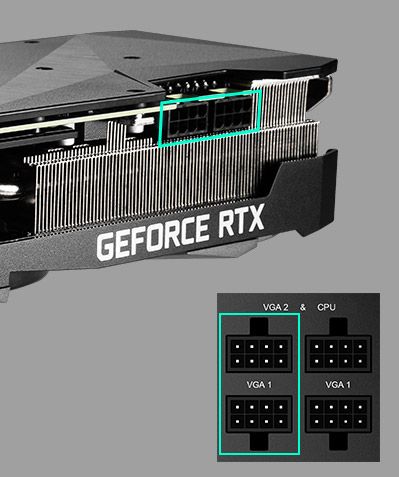 Ігрові блоки живлення сімейства MPG можуть легко підтримувати відеокарти на основі графічних процесорів NVIDIA GeForce RTX™ 30. Блоки живлення MPG розроблені відповідно до найвищих вимог. Використовувані в них роз’єми вводу/виводу розроблено для підтримки різних і універсальних способів підключення живлення до графічних карт відповідно до їх конструкції та специфікацій.