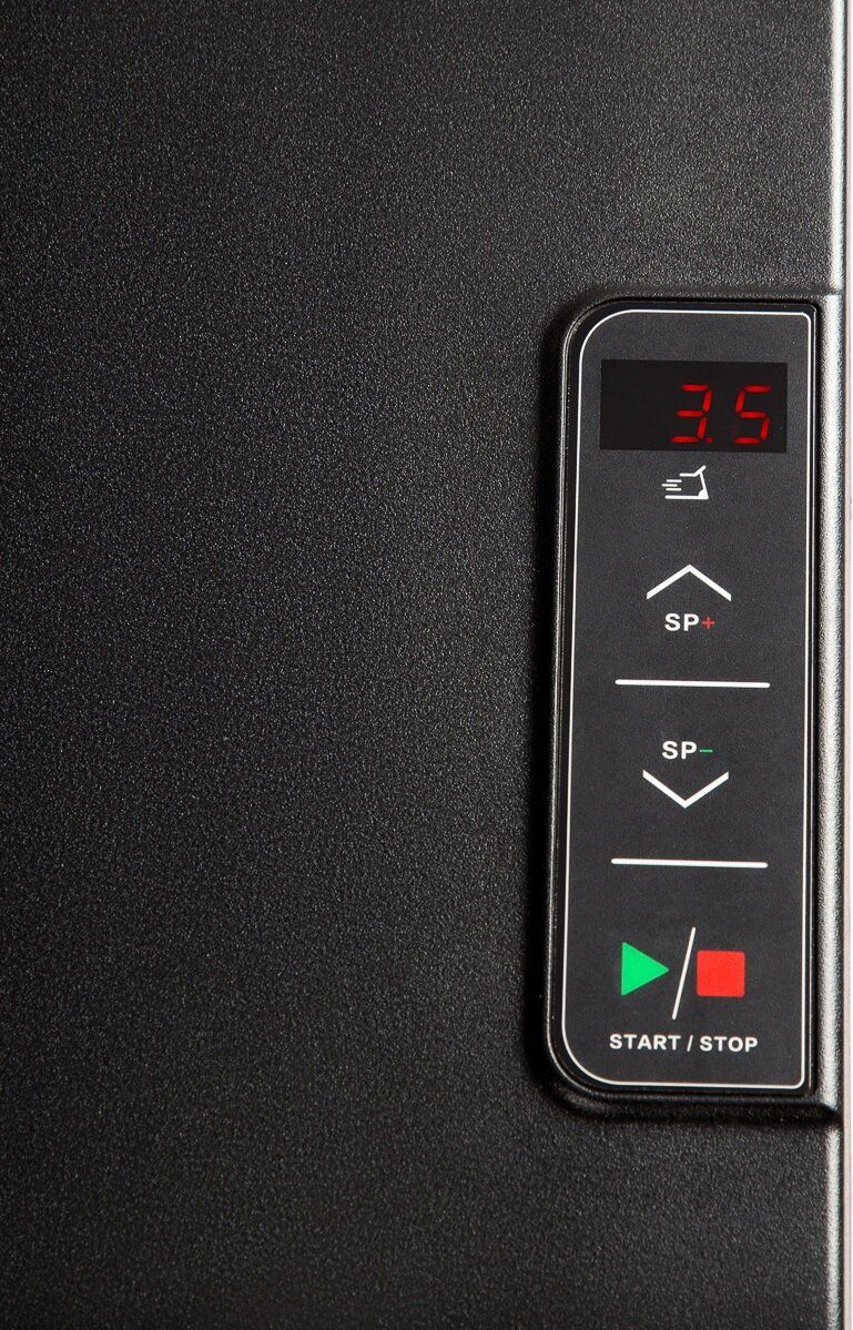 Ергономічна панель керування дозволяє зручно керувати такими параметрами, як час, швидкість, відстань, калорії та кількість кроків. Особливо корисними є кнопки для швидкого вибору швидкісних програм. Одним рухом ми можемо змінити швидкість до 3 або 5 км/год.