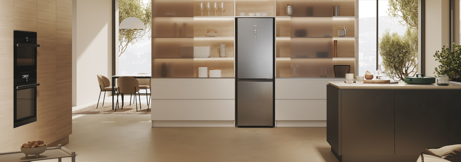 Дводверний холодильник Haier 2D 60 Series 5 Pro з холодильною камерою вгорі та морозильною камерою внизу — це ідеальне поєднання ексклюзивного дизайну та найсучасніших функцій. Холодильники цієї серії гарантують тривале зберігання продуктів завдяки спеціалізованим зонам, таким як Humidity Zone і новітнім технологіям Haier Air Surround.