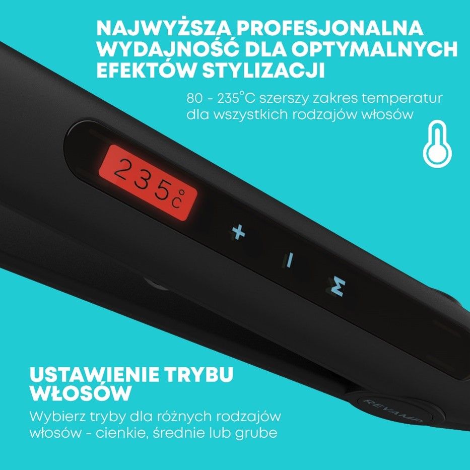 Виберіть бажану температуру відповідно до текстури вашого волосся за допомогою сенсорного керування на цифровому екрані. Ви можете вибрати температуру від 80ºC до 235ºC, щоб забезпечити стабільну та рівномірну укладку. Цифровий дисплей температури змінює колір залежно від вибраної температури - жовтий для нижчих температур, оранжевий для середніх і червоний для вищих.