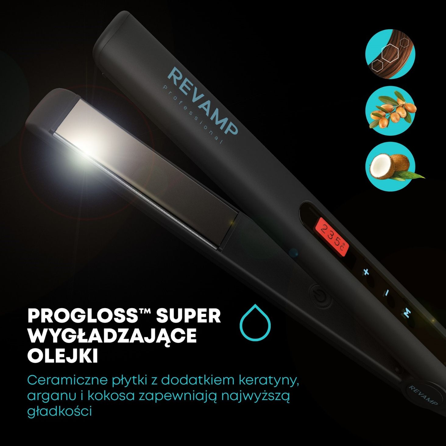 Керамічний механізм насичений кератином, аргановою та кокосовою олією для додання волоссю додаткового блиску та гладкості.