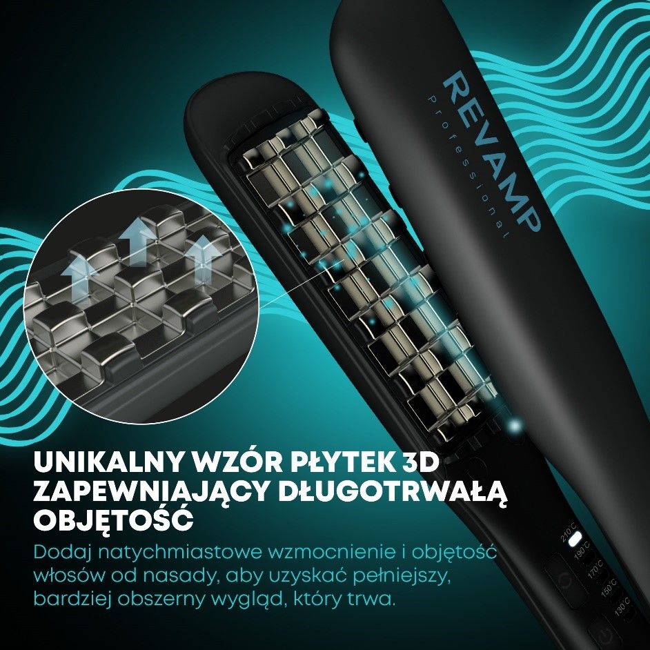 Завдяки інноваційним 3D-керамічним пластинам, надшвидкому професійному PTC-нагрівачу та іонному струменю цей засіб для об’єму надасть вашому волоссю більшого, об’ємнішого вигляду та блиску, гідного салону, лише за кілька хвилин.