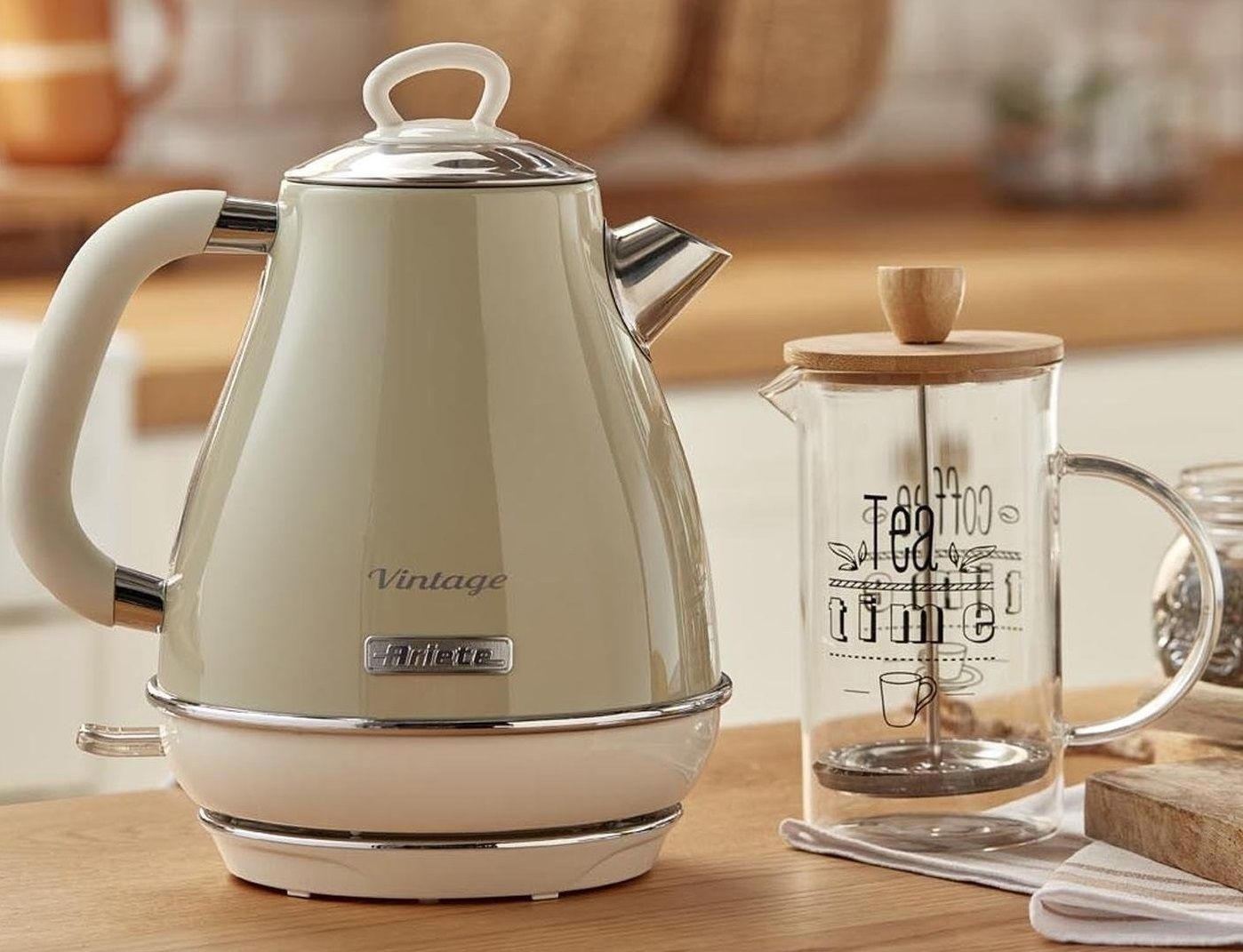 Не витрачайте час на марне очікування! Чайник Ariete_x000D_ Завдяки високій потужності він закип'ятить воду всього за кілька хвилин. Насолоджуйтесь гарячим_x000D_ напої, які можна швидко приготувати за допомогою чайника Vintage. Гарячий чай,_x000D_ кава чи трави? Вибір за вами, але поспішайте, вода вже гаряча!