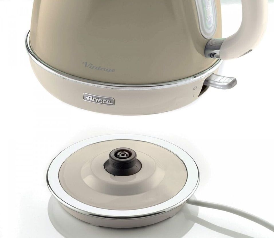 Чайник Ariete Vintage оснащений поворотним механізмом_x000D_ база, яка полегшує використання. Корпус бездротового чайника ви можете_x000D_ поставте його на стіл, щоб постійно поповнювати запаси чаю або трав_x000D_ сніданок або обід. Чайник Vintage не тільки закип'ятить воду, а й..._x000D_ прикрасить ваш сімейний стіл. Унікальна форма та надзвичайний колір зробили його..._x000D_ Цей чайник - справжня окраса кухні!