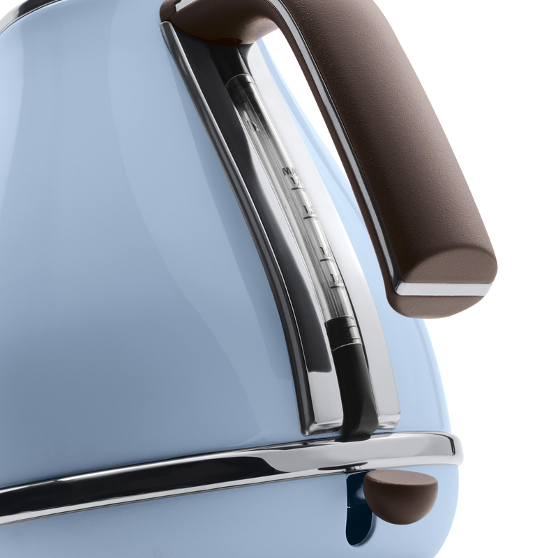 Чайник De'Longhi Icona Vintage KBOV2001.AZ поєднує в собі ретро-стиль, італійський дизайн і класичну елегантність. Його характеризує унікальне глянцеве покриття з нержавіючої сталі та деталі з хромованої сталі в стилі ретро. Серія сніданків De'Longhi Icona Vintage є справжнім ідеалом італійського дизайну.