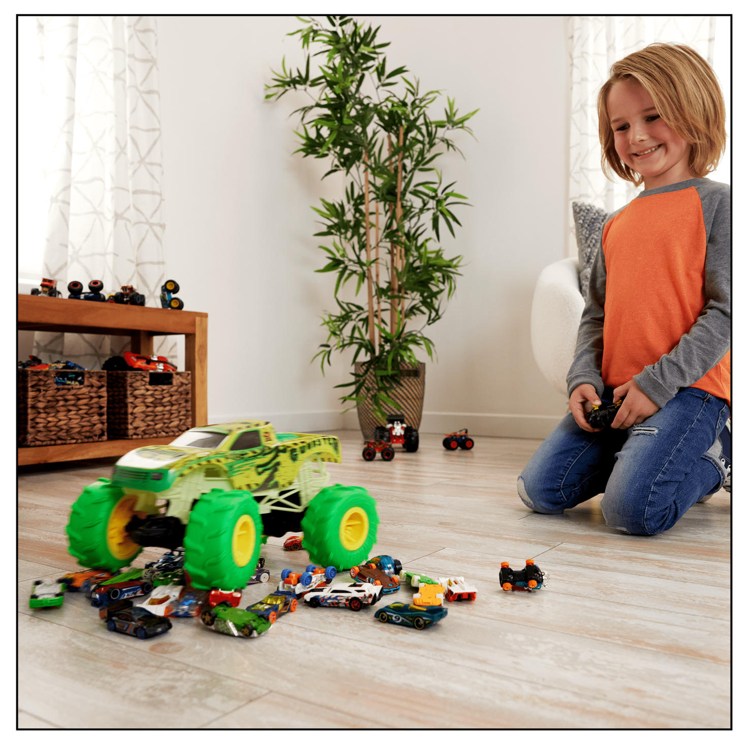 Цей автомобіль із дистанційним керуванням має шини Terrain Action™ для зчеплення з різними поверхнями в приміщенні та на вулиці.