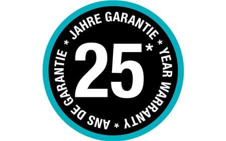 25 років гарантії гарантують високу якість * Детальні умови гарантії можна знайти в посібнику користувача, що додається до продукту, або на веб-сторінці www.gardena.com/warranty. Ця гарантія не виключає, не обмежує та не призупиняє права покупця, що випливають із положень про гарантію на дефекти проданого товару.