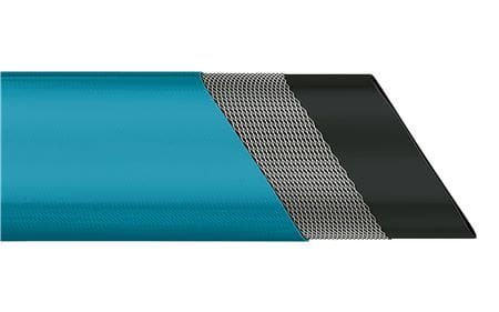 У набір входить плоский шланг промислової якості. Він забезпечує стійкість до робочого тиску 5 бар і тиску розриву до 15 бар. Шланг можна використовувати як щодня в саду, так і в полі. Він виготовлений з подвійного шару армованого сіткою пластику. Це робить його стійким до УФ-випромінювання та погодних умов.