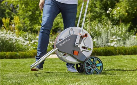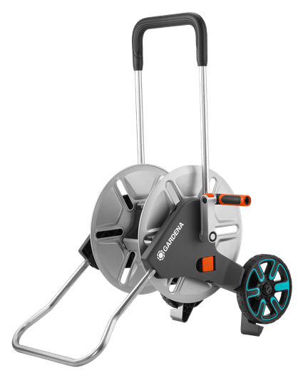 Металевий візок для шланга GARDENA CleverRoll M — це надзвичайно міцна конструкція, яка витримає навіть найважчі умови в саду. Візок дозволяє зручно та мало місця зберігати ваш садовий шланг. Для намотування шланга на барабан використовується ергономічна пластикова рукоятка з м'якими елементами. Складана ніжка коляски забезпечує високу стійкість. Особлива форма і високе розташування коліс додатково допомагають утримувати коляску в положенні стоячи. Складана основа, опускаюча ручка та складна ручка гарантують, що продукт у складеному стані займає якомога менше місця.