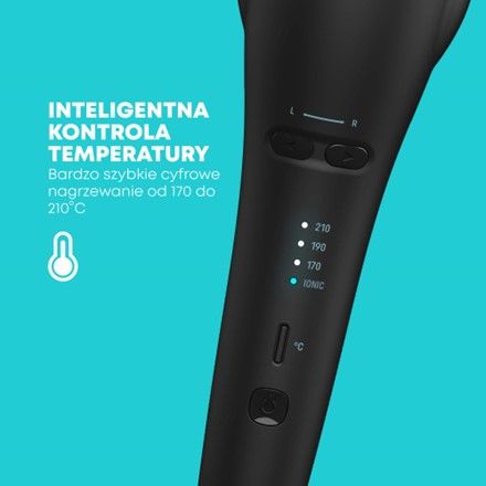 Оснащено надшвидким регулюванням температури від 150°C до 210°C для різних типів і текстур волосся. Просто виберіть температуру укладання та напрямок обертання, і готово.
