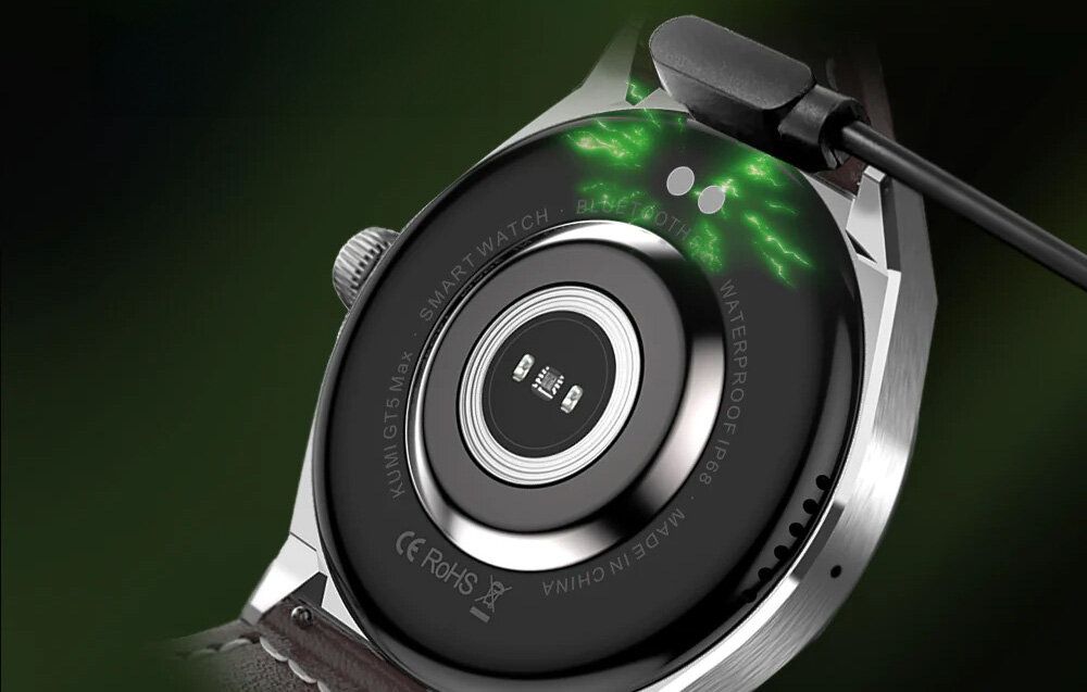 Розумний годинник KUMI GT5 Max — це не лише стильне доповнення до вашого гардеробу, а й функціональний пристрій, який допомагає вести здоровий спосіб життя та організовувати щоденні обов’язки. Має вбудований акумулятор ємністю 290 мАг, що дозволяє годиннику працювати близько 7 днів. У комплект входить кабель USB-A/магнітний роз'єм, завдяки якому можна легко заряджати смарт-годинник. Годинник має сигналізацію заряду акумулятора, тож ви знатимете, коли його потрібно зарядити.