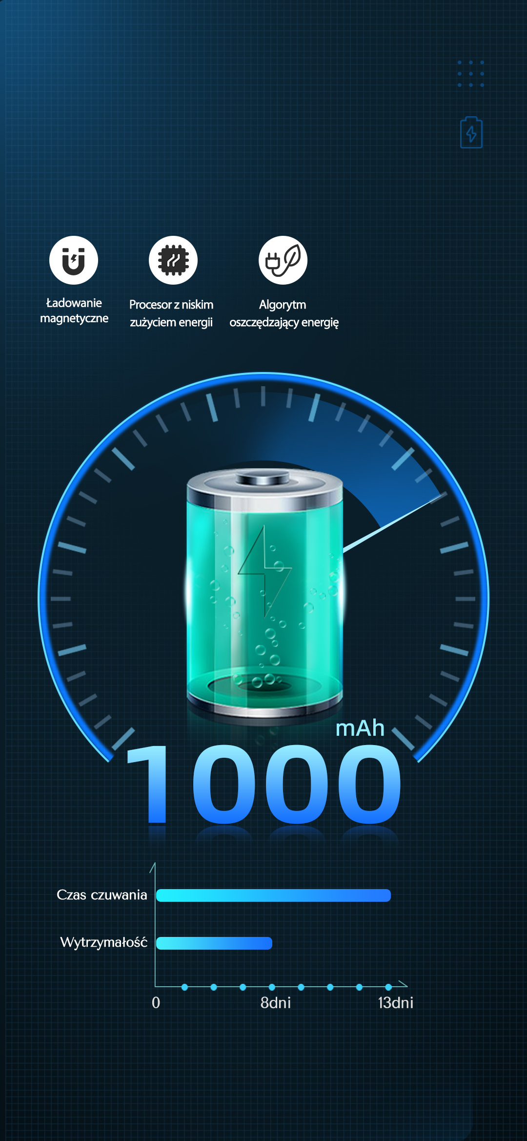 Витривалість до 8 днів в робочому режимі і до 13 днів в режимі очікування.