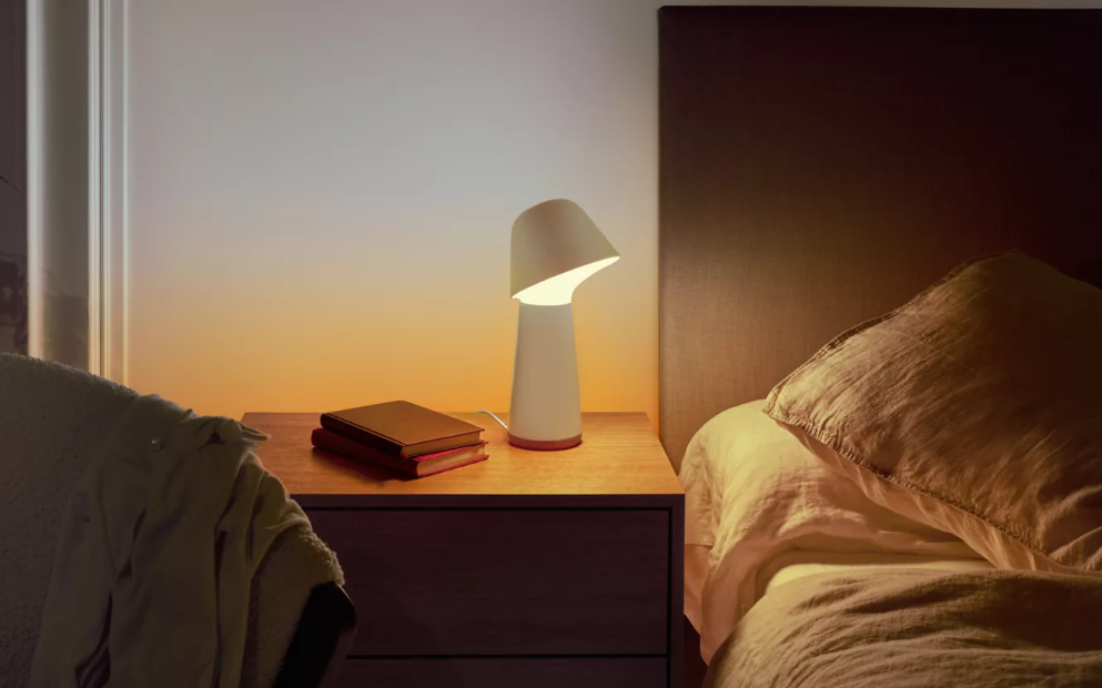 Лампа «Сутінки» не захаращуватиме вашу тумбочку. Більше місця для книг, гігантської чашки чи телефону (але краще вимкніть це синє світло!)