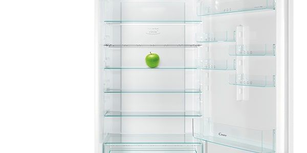Скляні полиці в холодильнику Candy Fresco дають вам повну свободу в їх конфігурації. Ви можете легко змінити їх розташування відповідно до ваших потреб. А коли прийде час чистити, легкість знімання дозволить швидко та зручно випрати їх.