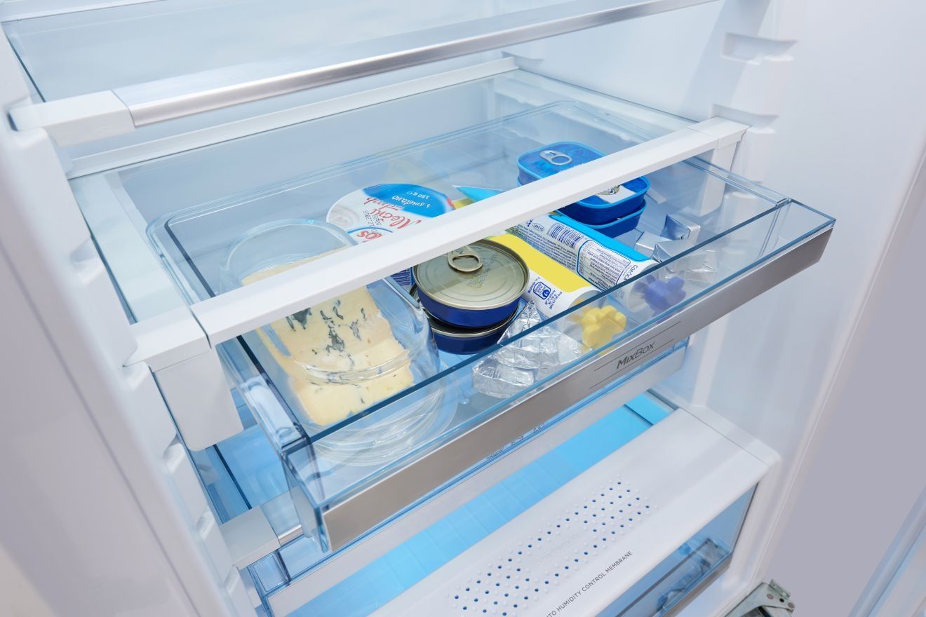 Ця неглибока шухляда стане в нагоді для зберігання всіх менших продуктів, таких як спреди, масло, рибні консерви або швидкі закуски. Він забезпечує максимальну організацію простору в холодильнику, завдяки чому ви не забудете про їжу і тим самим уникнете марнування їжі. Шухляда висувається всередину та витягується для легкого доступу до її вмісту.