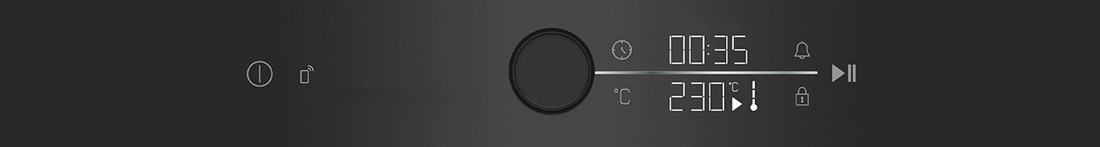 Вибирайте програми та встановлюйте параметри легко та зручно за допомогою інтуїтивно зрозумілої світлодіодної сенсорної панелі, видимої після ввімкнення духовки. За допомогою ручки виберіть час і температуру випікання від 40 до 280°C і підтвердьте вибрані функції.