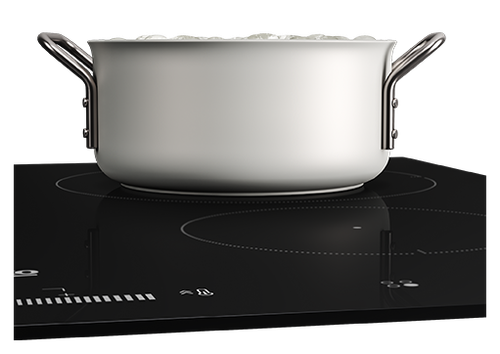 Індукційна варильна поверхня холодна та безпечна для дотику. Розігрівається лише посуд, який поставлений.