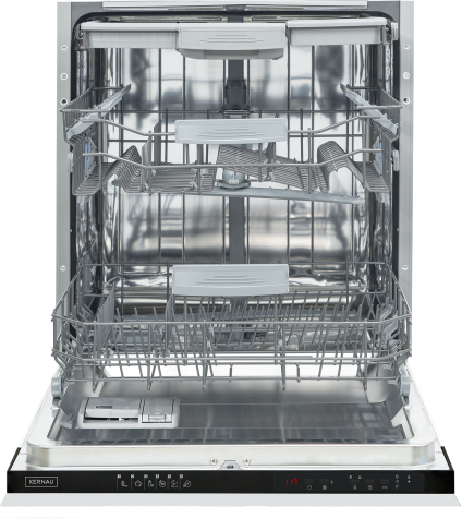 Вбудована посудомийна машина Kernau KDI 6955 SD вміщує 15 комплектів посуду - саме така місткість дозволяє посудомийній машині вимити за один цикл посуд, що накопичився за день. Ця модель буде добре працювати як у великих, так і в невеликих домогосподарствах. Усе завдяки опції прання з половинним завантаженням. Ви можете мити меншу кількість посуду так само економічно. Можливість зручного розташування столових приборів забезпечить т.зв третій кошик, тобто додаткова шухляда, в яку рівно кладуть столові прибори. Вбудована панель управління залишається прихованою за передньою частиною шафи, тому посудомийна машина Kernau жодним чином не впливає на облаштування кухонного приміщення, непомітно виконуючи своє призначення. Коли ви ввімкнете його, загориться індикатор, який випромінює світло на підлогу. Так ви легко розпізнаєте момент, коли пристрій перестає працювати. Безщітковий двигун, який використовується в цій моделі, практично не зношується, а високу якість посудомийної машини підтверджує 5-річна гарантія від виробника.
