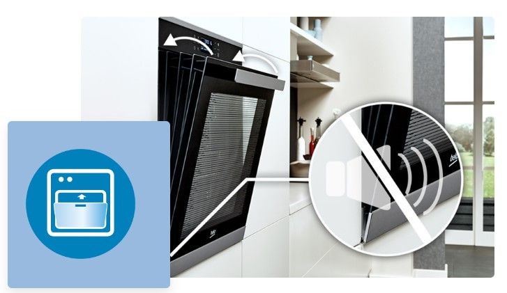 Завдяки новій конструкції петель дверцята в духовці Beko працюють плавно, м'яко і тихо - без хлопків і зайвого шуму.