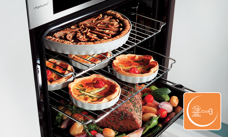 Кухар3 Випікайте 3 страви одночасно Якби випічка була спортом, Cook3 був би вашим суперконкурентом! Завдяки цій функції ви можете готувати до 3 різних страв одночасно на трьох різних рівнях без ризику проникнення запахів і ароматів! Результат такої випічки очевидний: 3:0 на користь Cook3.