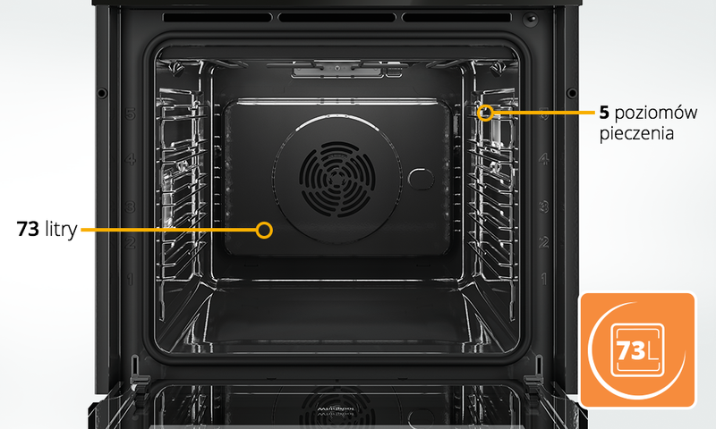 Ємність: 73 л. Простір, необхідний для досягнення найкращих результатів приготування. Сучасний дизайн напрямних дозволить розмістити всі лотки ідеально стійко, а збільшений об’єм до 73 літрів і цілих 5 різних рівнів приготування забезпечать комфорт приготування найкращих страв для кожного учасника. навіть велика родина найпростішим і швидким способом без будь-яких компромісів. Пора в гості!