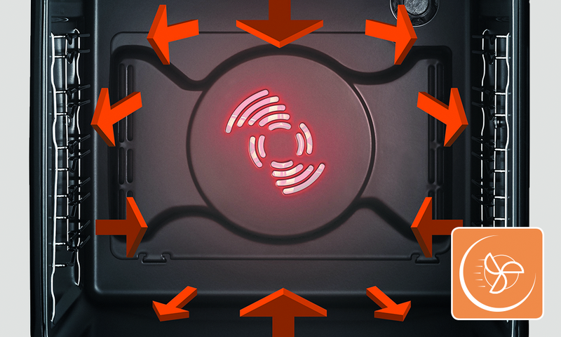 Конвекція повітря Страви пропікаються рівномірно з усіх боків завдяки вентилятору з круглим нагрівачем, який розподіляє тепле повітря всередині всієї духовки.