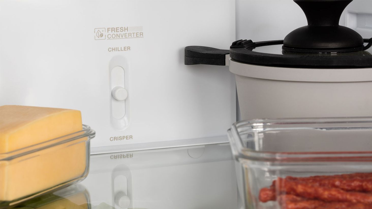 Холодильник MPM-357-FF30 має просторий внутрішній простір, який скомпонований таким чином, щоб зручно зберігати продукти. Скляні полиці, стійкі до подряпин, можна регулювати на будь-яку висоту. Два висувних контейнера використовуються для зберігання продуктів, які потребують розділення: овочів, фруктів, нарізки.