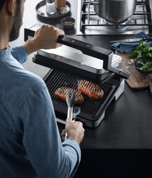 Гриль оснащений запатентованою технологією, яка використовує датчики для визначення товщини та кількості продуктів, що автоматично регулює температуру та час смаження. Таким чином ви можете бути впевнені, що результати завжди будуть ідеальними!